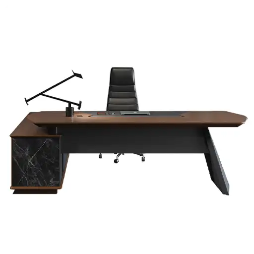 Description : An elegant office desk design that blends functionality and professionalism.  Materials : MDF wood Top thickness : 24 cm Dimensions : Width : 200 cm Height : 75 cm Depth : 80 cm Side Unit : 160 cm Additional Inf...