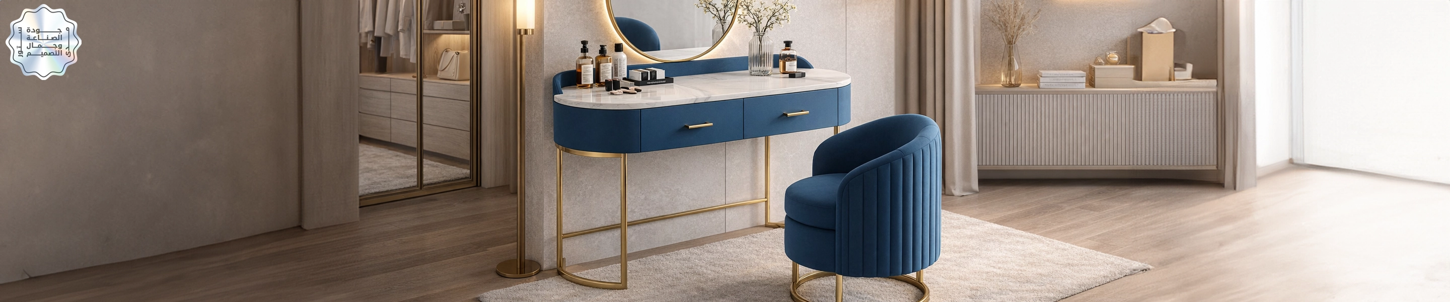 تسريحه مودرن مصنوعة من خشب طبيعي و ستيل معالج الكتروستاتيك وقماش قطيفه عالي الجودة أضف لمسة من الأناقة والعملية إلى منزلك مع هذه التسريحة المصنوعة من خشب الكونتر المعروف بمتانته ومظهره الجذاب. تجمع هذه القطعة بين التصميم العصري والجودة العالية لتناسب مختلف أنماط الديكور الداخلي. مو...