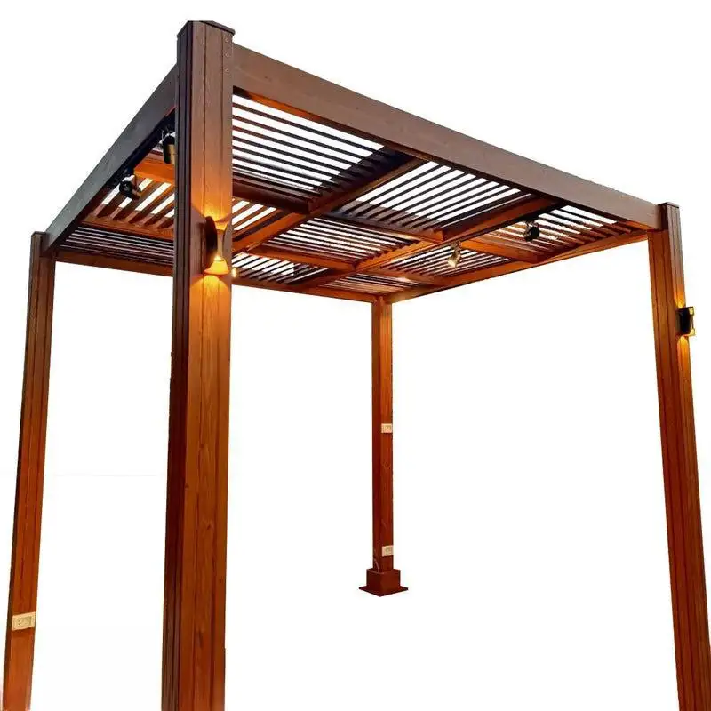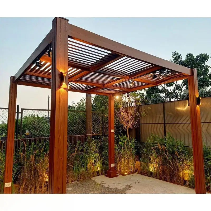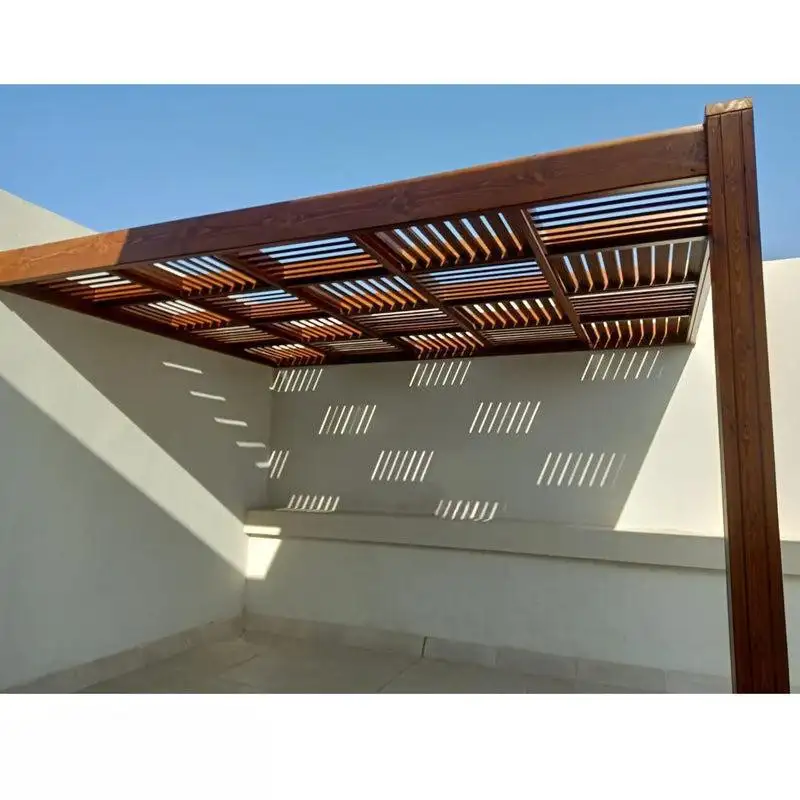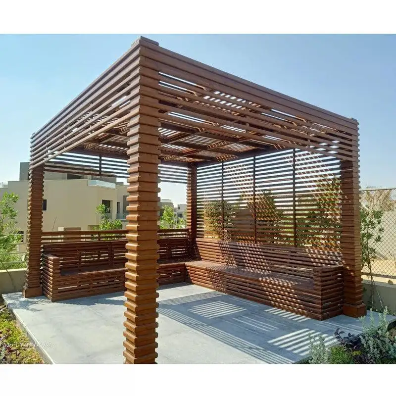 برجولة خارجية مصنوعة يدويًا من خشب طبيعي عالي الجودة، بتصميم أنيق ومتين يوفر الظل ويضفي لمسة دفء وجمال على المساحات المفتوحة مثل الحدائق