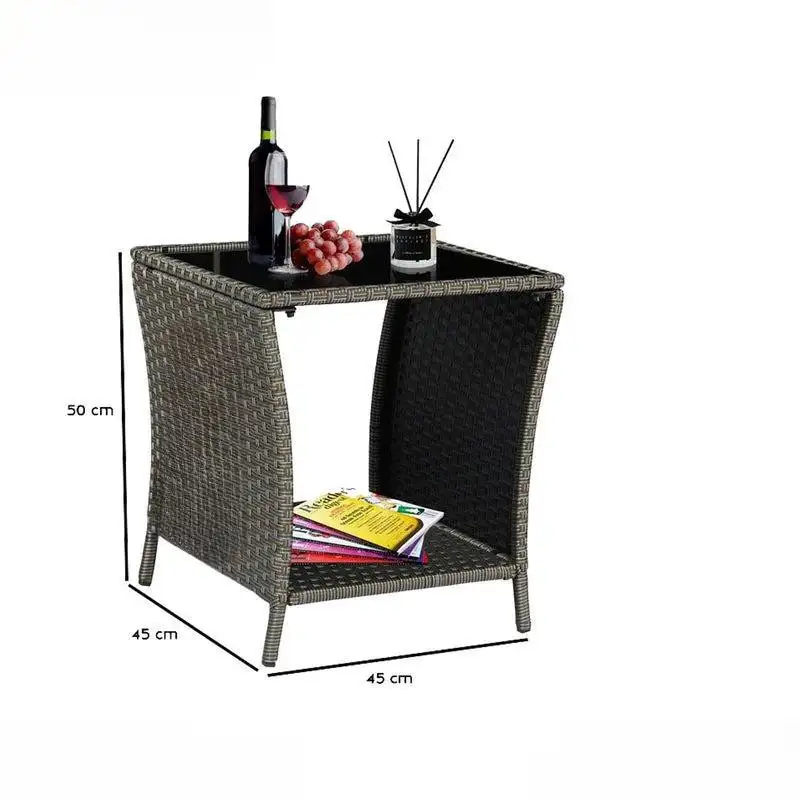 Outdoor rattan table with an elegant and durable design, ideal for use in gardens, terraces, or balconies. Made from weather-resistant materials.