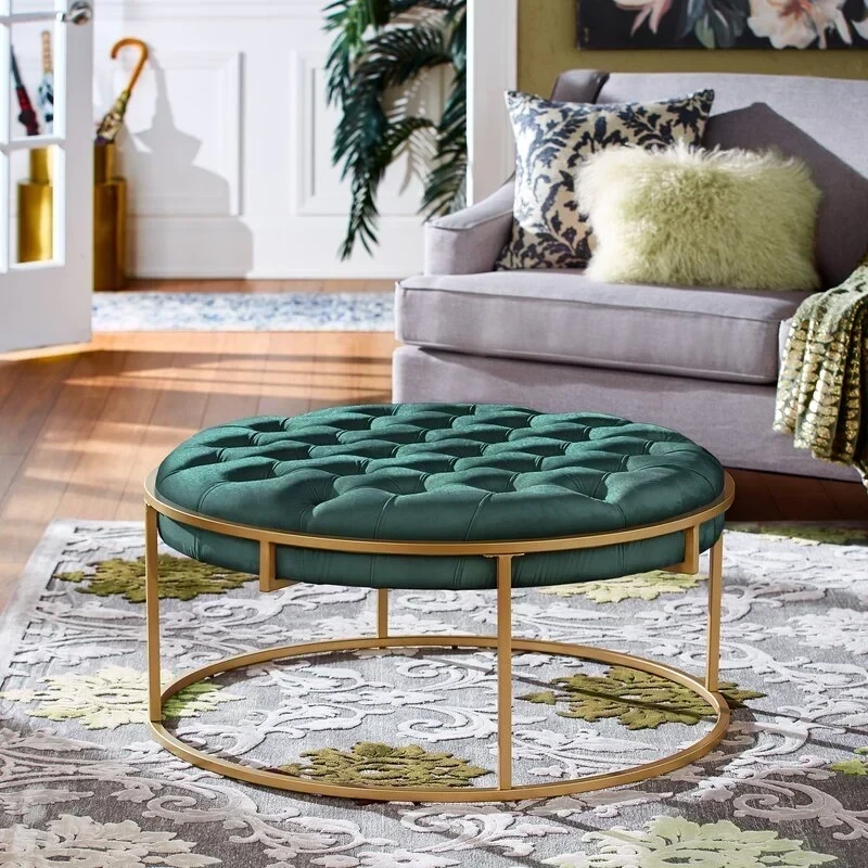 • ترابيزة ديكور كابوتونيه مصنوعة من ستيل دهان الكتر وستاتك وقماش قطيفه عالي الجودة