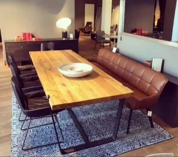 • Dining table made of electrostatically treated metal, natural musky wood and high-quality imported Turkish leather fabric.