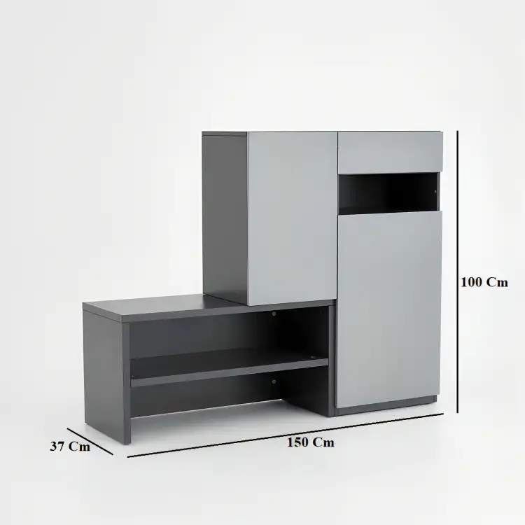 جزامة عملية أنيقة عصرية جداً مصنوعة من خشب ام دي اف , مكونة من وحدتي تخزين بهما عدة أرفف