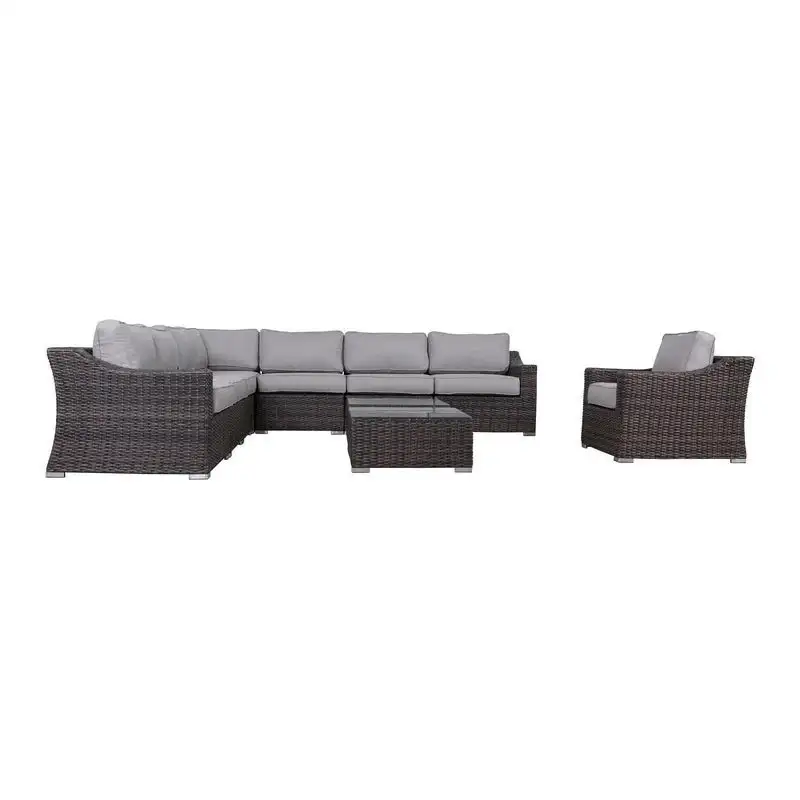 أضف لمسة من الفخامة والعملية لمساحتك الخارجية. ركنة رتان عالية الجودة بتصميم أنيق ومقاومة ممتازة للعوامل الجوية، صُممت لتلائم كل الأذواق.
