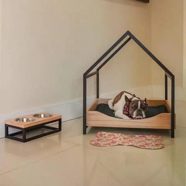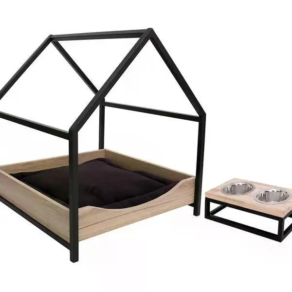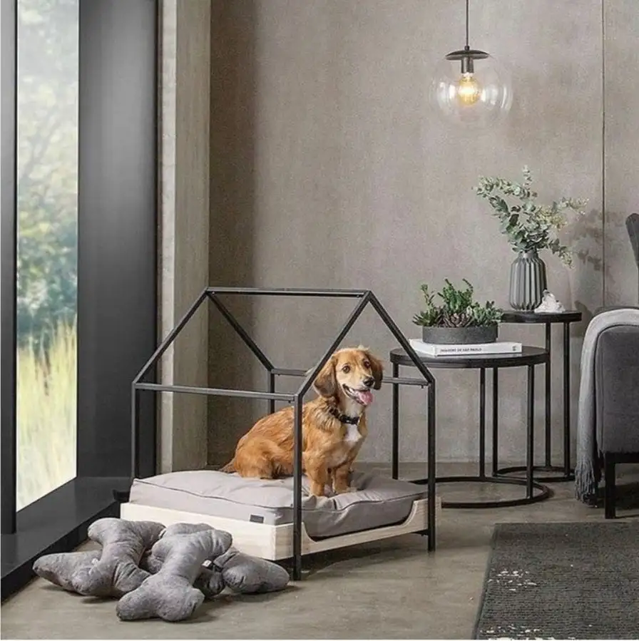 • سرير حيوانات مصنوع من معدن دهان الكتروستاتيك وقماش وخشب كونتر طبيعي عالي الجودة