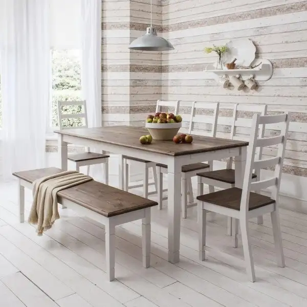 Dining table consisting of 5 chairs and a seat made of high-quality musky wood