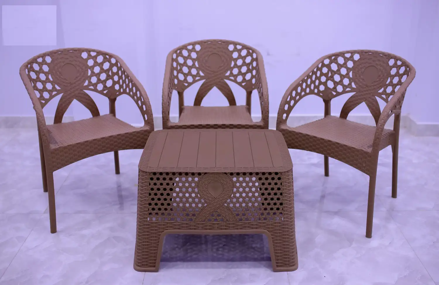 Get a durable and lightweight plastic chair set, weather-resistant and ideal for gardens, terraces, and balconies.
