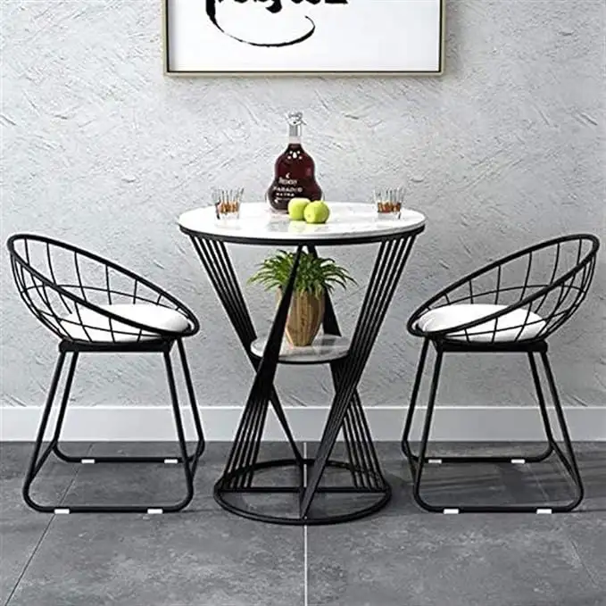 Materials: The table is made of steel with electrostatic paint and the chairs are made of steel with electrostatic paint - upholstery with 33 mm density sponge, imported fabric - the base is made of natural plywood