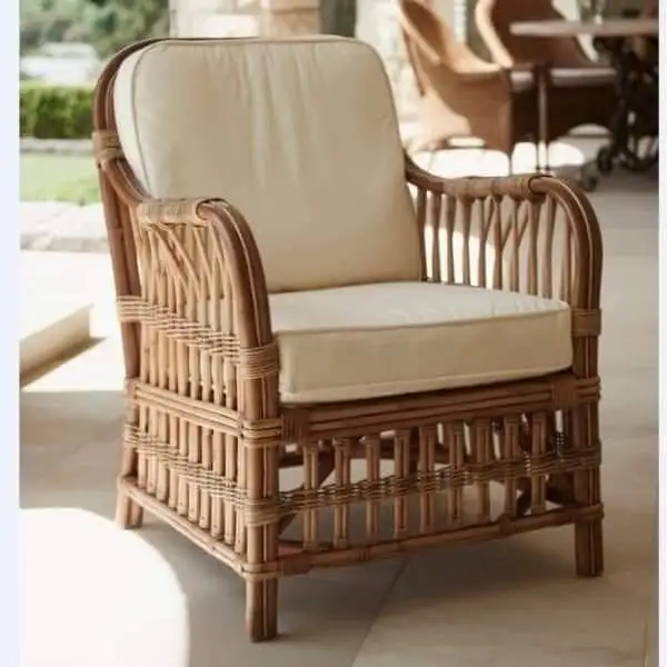 A stylish waiting chair handcrafted from natural bamboo and treated rattan, featuring a simple and functional design that brings a calm