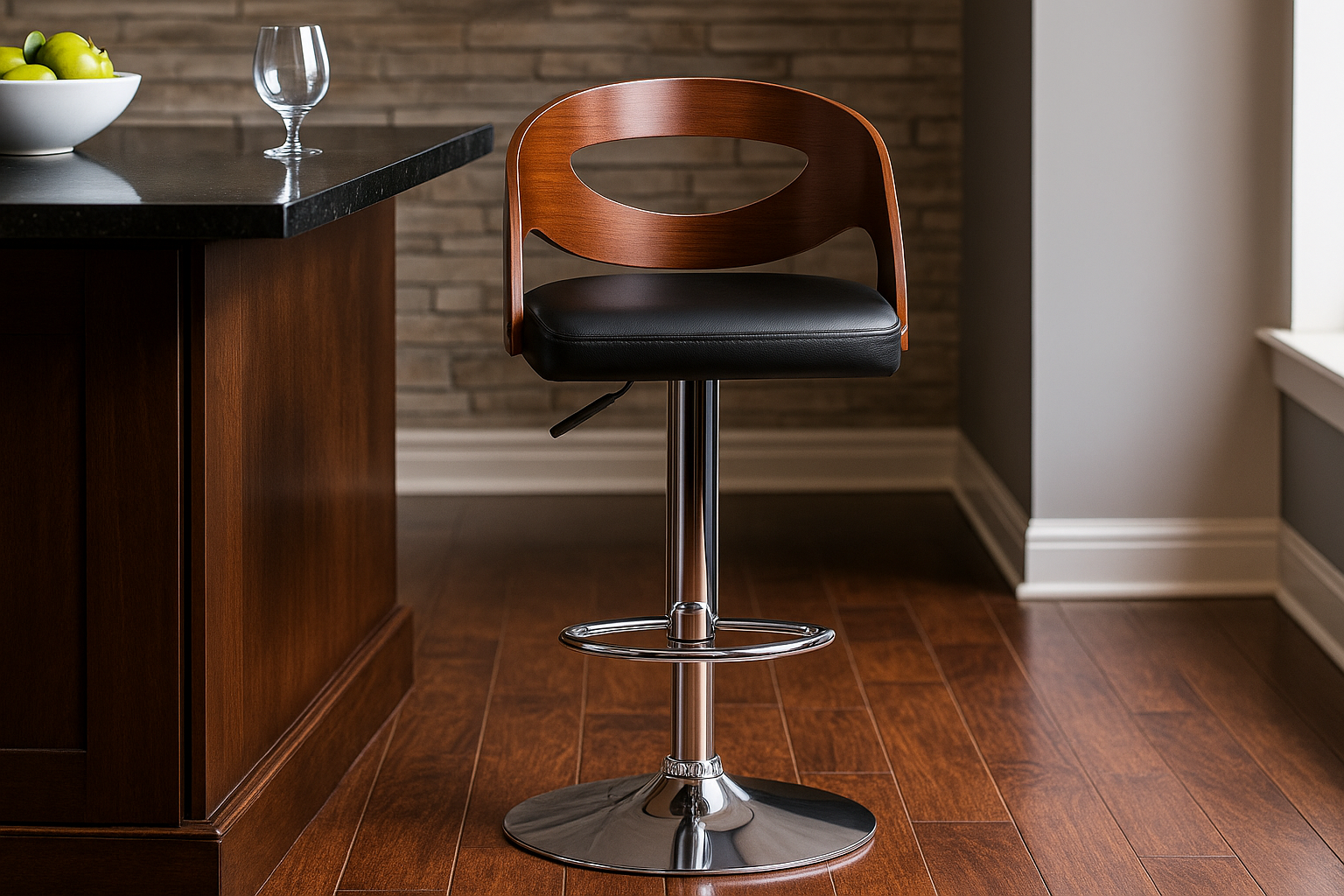 • كرسي بار جلد قاعدة وظهر من خشب الكونتر الطبقات جلد مستورد عالي الجودة