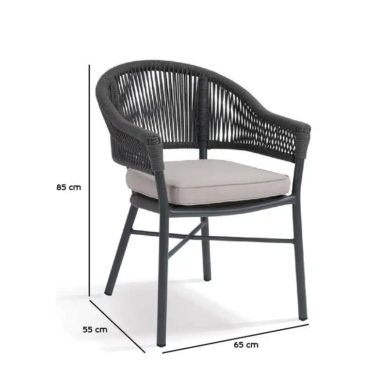 كرسي خارجي أنيق مصنوع من هيكل حديد متين مطلي بدهان الكتروستاتيك المقاوم للعوامل الجوية، ومزود بأحبال عالية الجودة لراحة مثالية