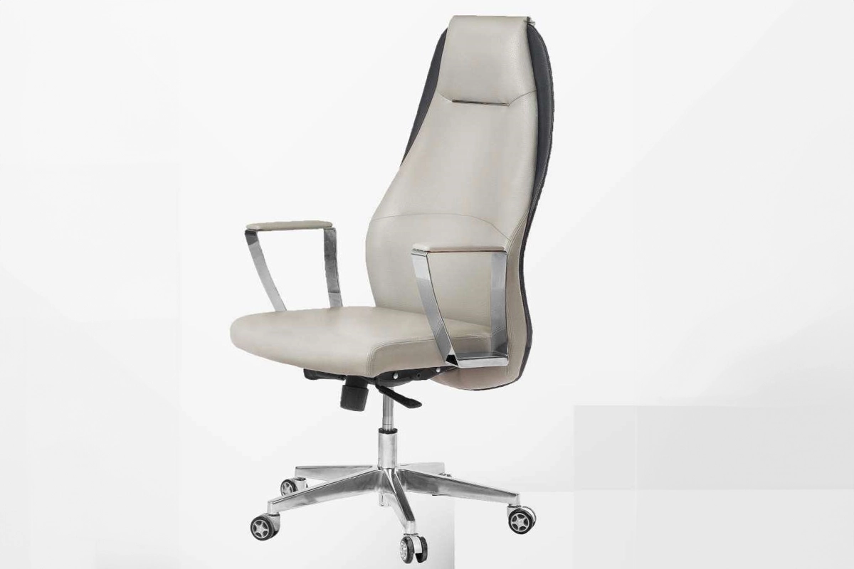 كرسي جلد من مدى ستور بظهر عالي يوفر دعمًا متكاملًا للظهر وراحة ممتازة لساعات العمل الطويلة، تصميم أنيق يعكس فخامة المكتب ويعزز الإنتاجية.