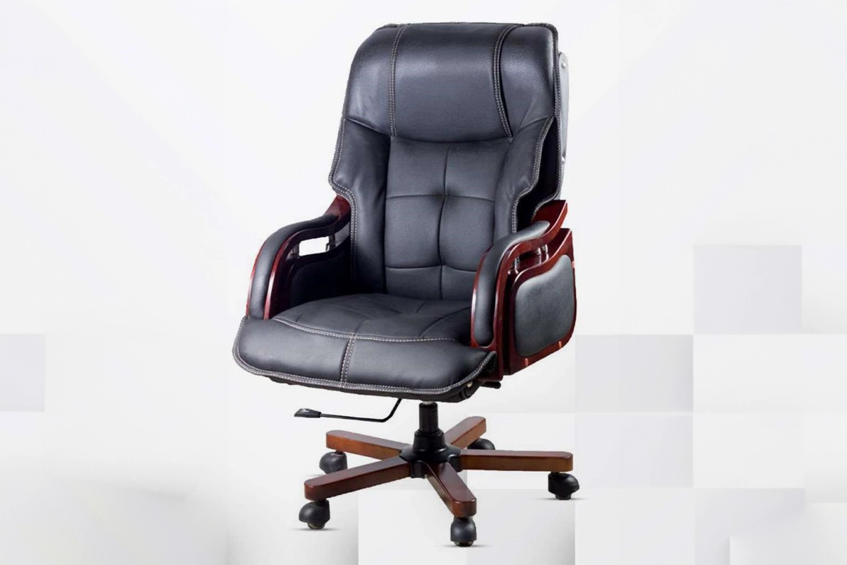 كرسي جلد من مدى ستور يمنح دعمًا قويًا للظهر مع إحساس فاخر بالثبات، تصميم أنيق يواكب ساعات العمل الطويلة ويعزز حضور المكتب.