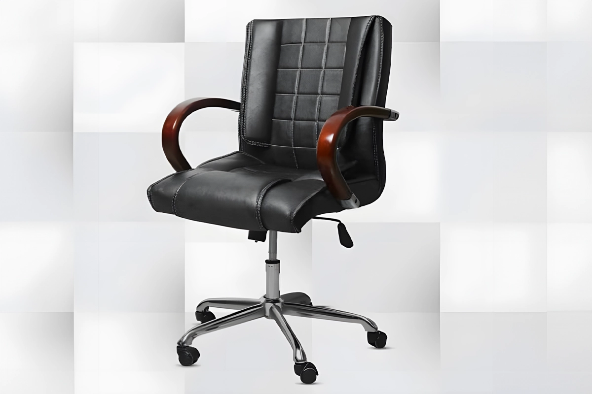 Mada Store mid back leather office chair offers balanced seating and gentle back support, combining practicality and elegance for everyday office use.