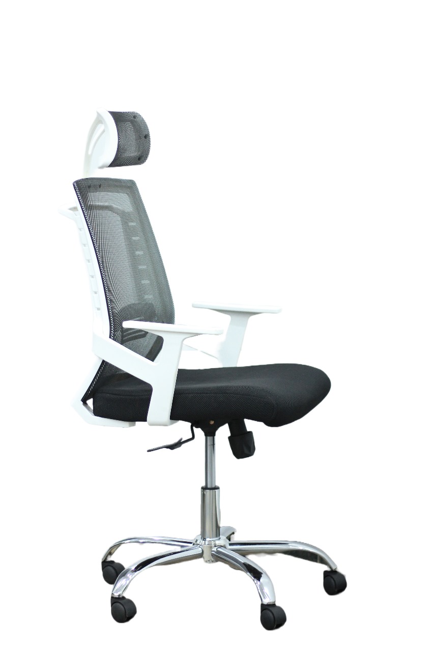 كرسي من مدي بظهر طويل وهيكل شبكي مبتكر يوفر توزيعًا متساويًا للوزن وتهوية ممتازة، مثالي للجلوس الطويل والمريح.