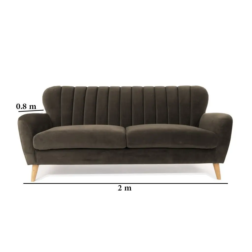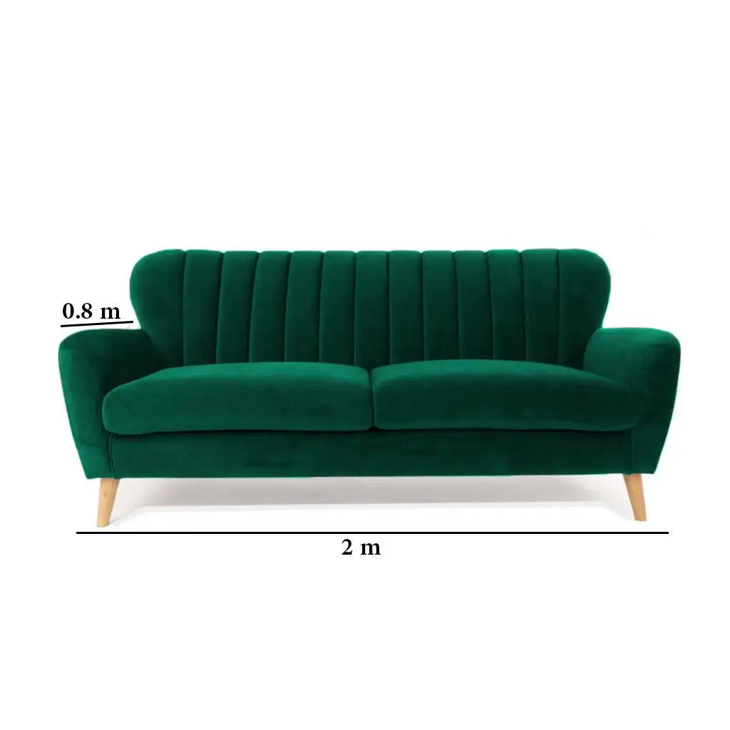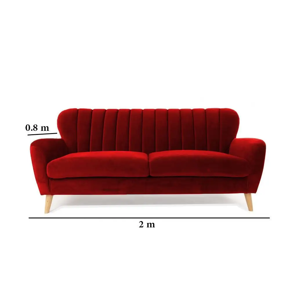 Three-seater sofa made of red beech wood and high-quality linen or velvet fabric.