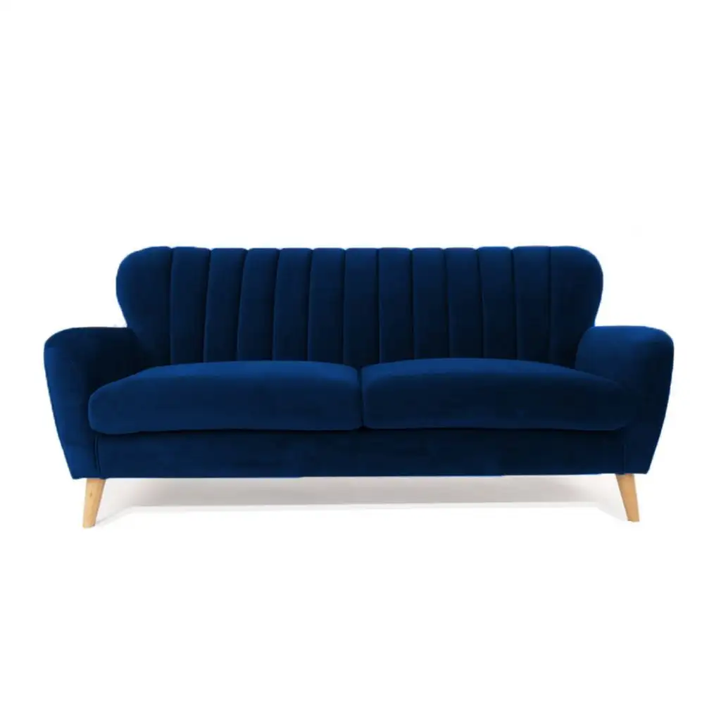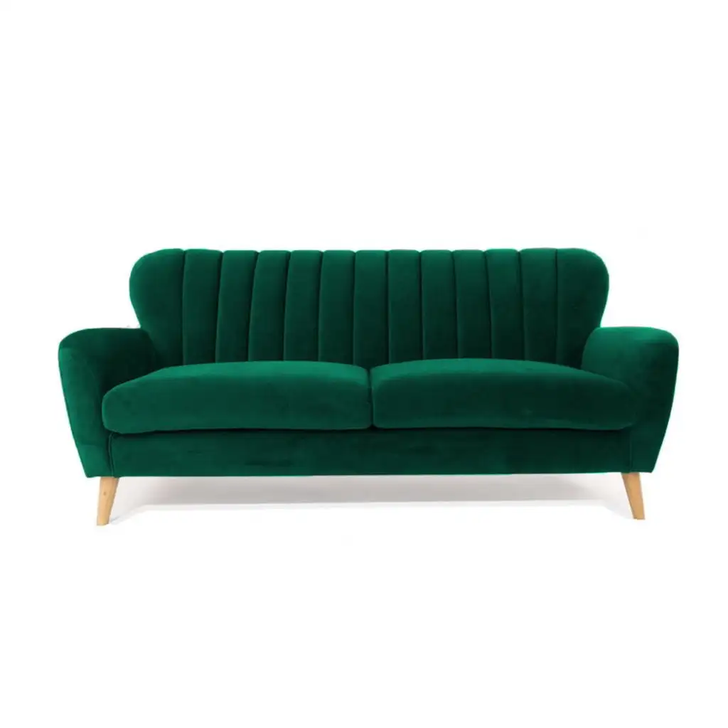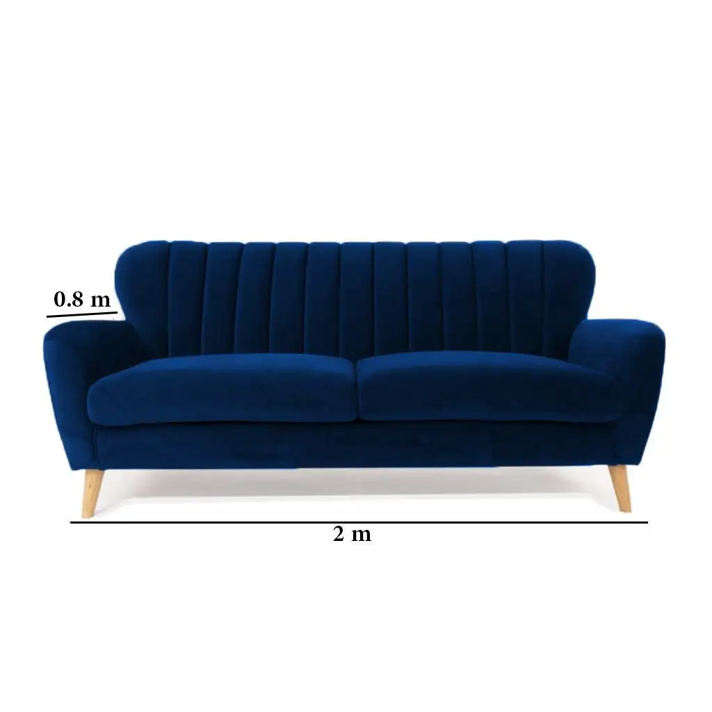Three-seater sofa made of red beech wood and high-quality linen or velvet fabric.
