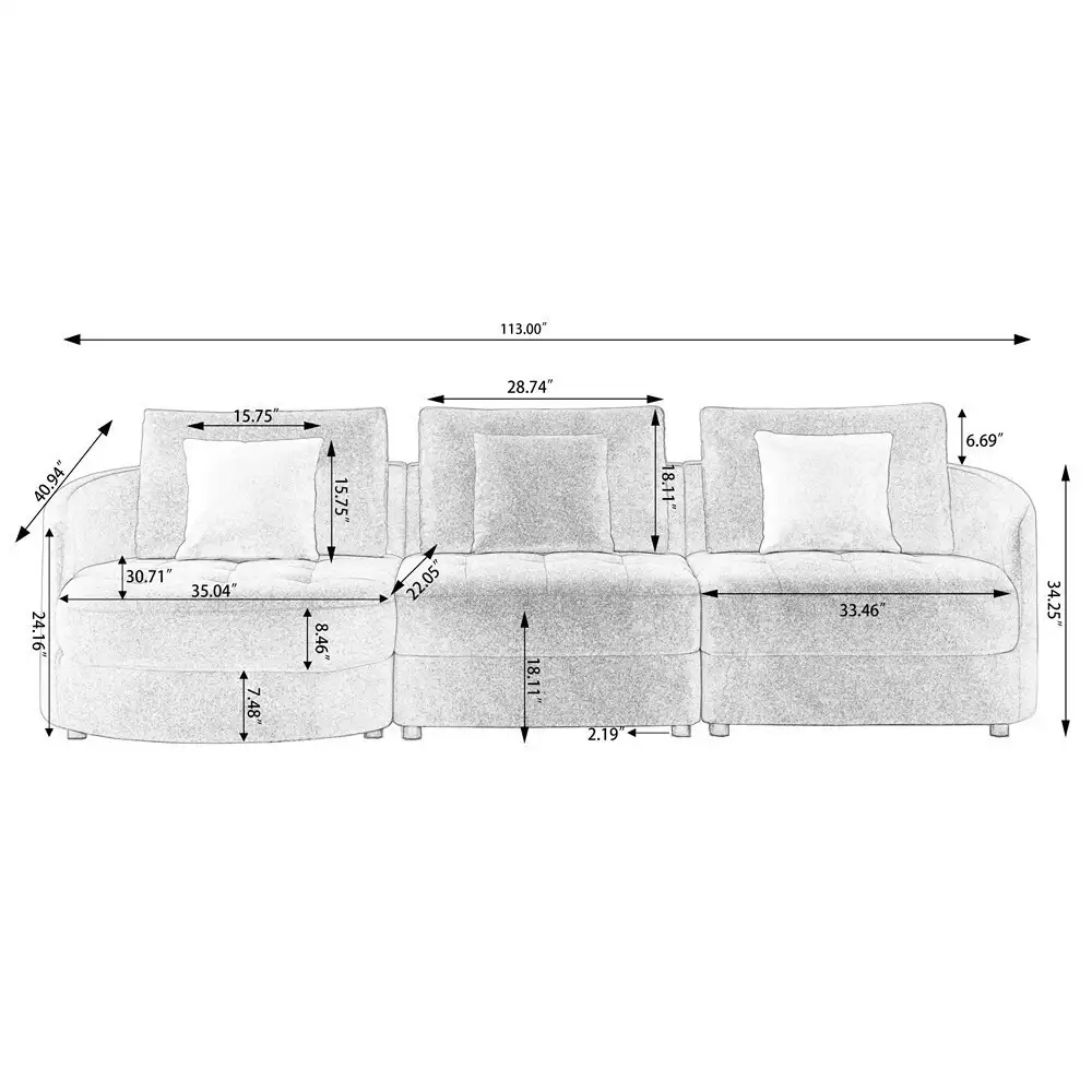 Modern three-seater sofa made of red beech wood and high-quality linen or velvet fabric