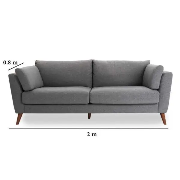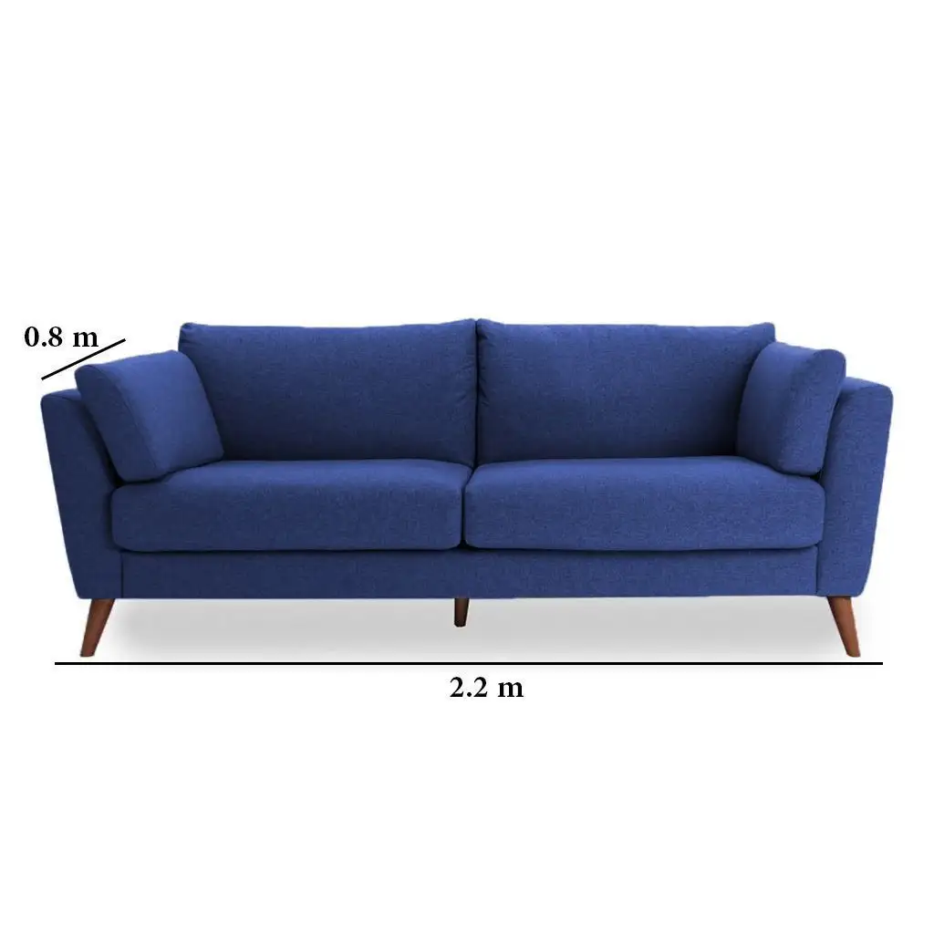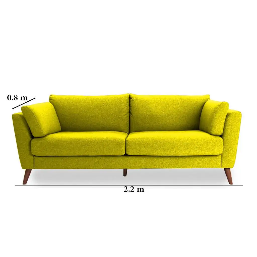 • Three-seater sofa made of red beech wood and high-quality linen or velvet fabric.