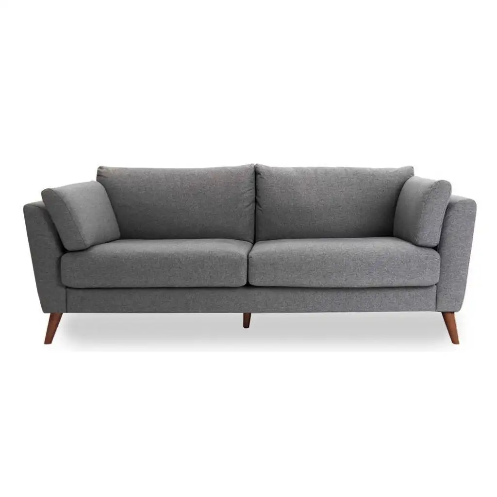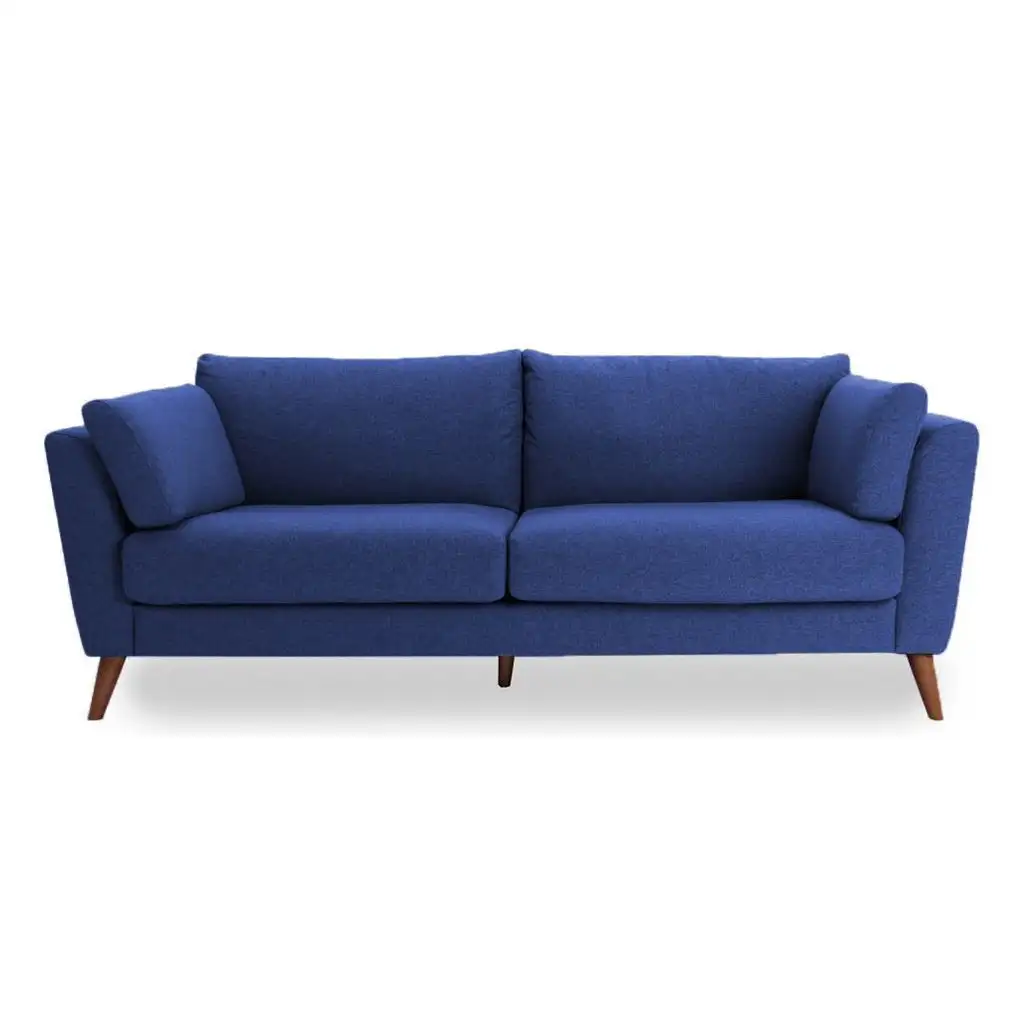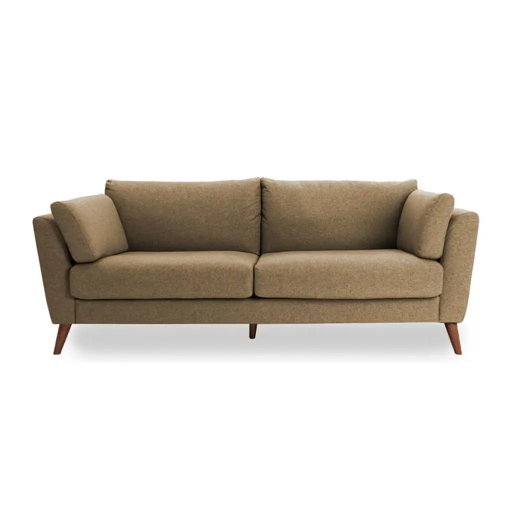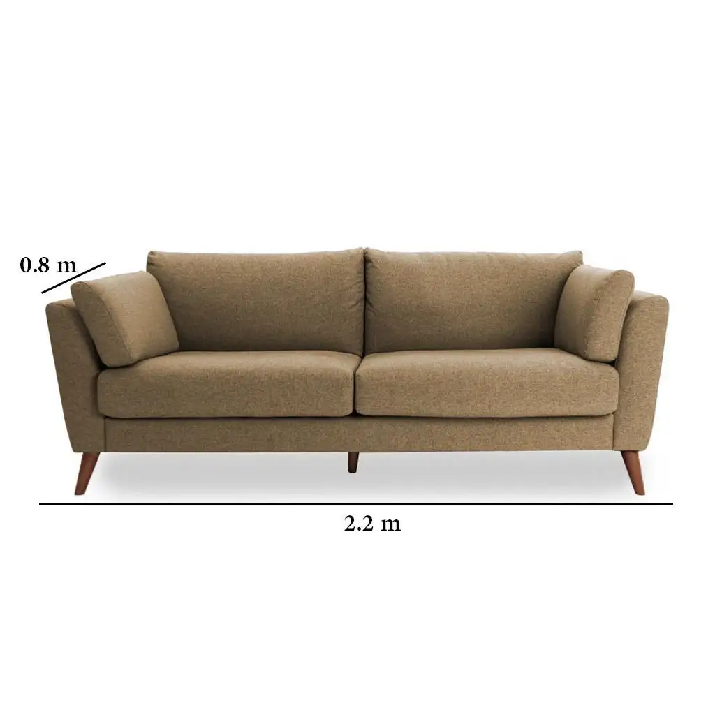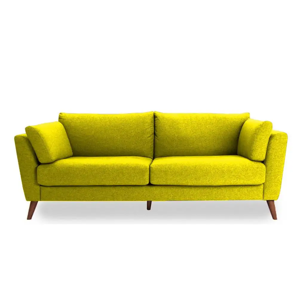 Modern Three-Seater Sofa Red Zebrano Wood with Linen or Velvet Fabric MS-11212