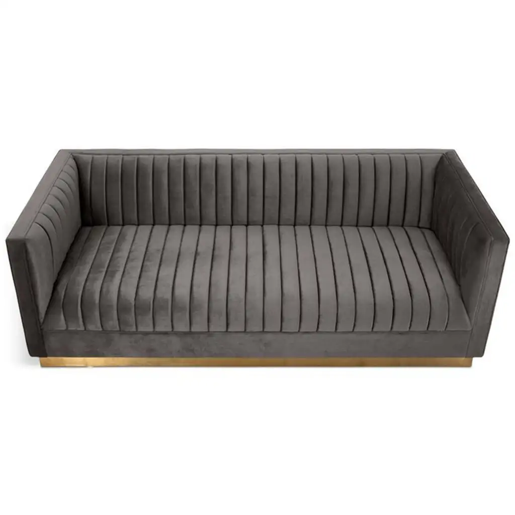 كنبة ثلاث مقاعد مودرن مصنوعة من خشب زان احمر و قماش كتان او قطيفة عالي الجودة