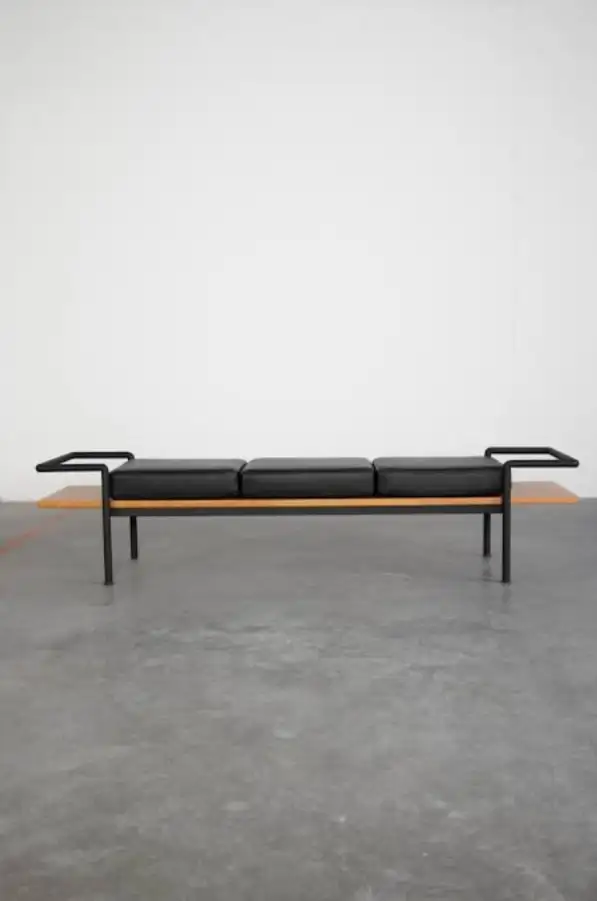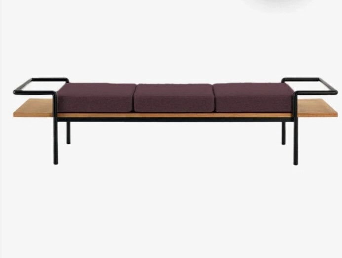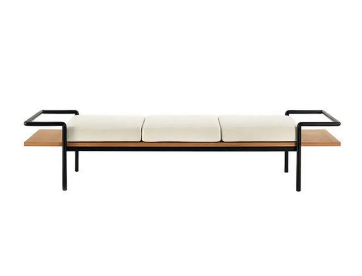 • كنبة ثلاث مقاعد مودرن مصنوعة من معدن معالج الكتروستاتيك و خشب طبيعي موسكي و قماش واتر بروف أو كتان عالي الجودة