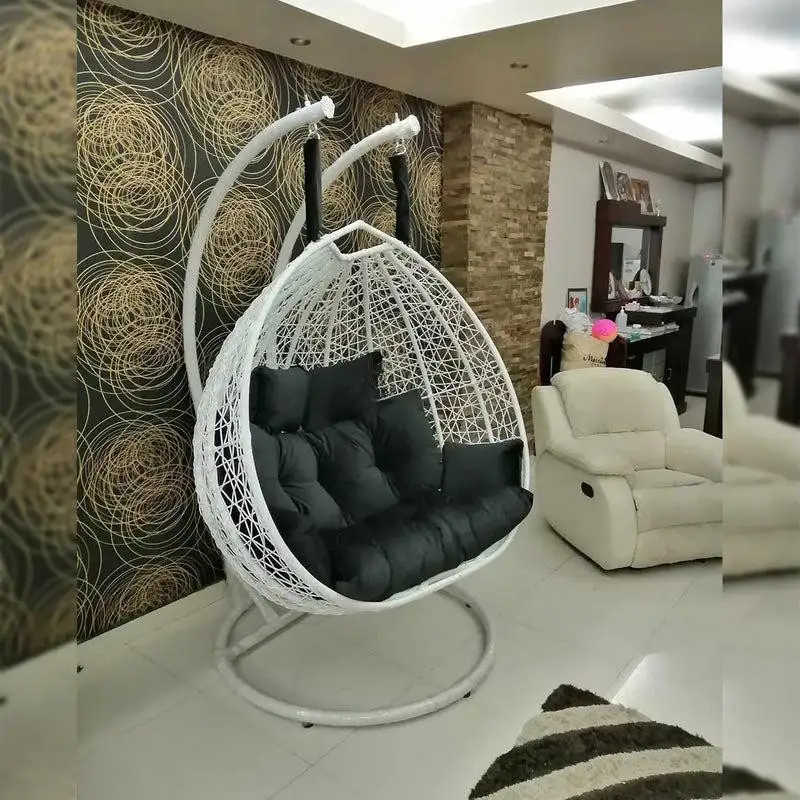 A hanging swing with a modern and attractive design that adds a touch of luxury to any outdoor space. Featuring comfortable cushions and a sturdy frame, it offers the perfect spot to relax in your garden or balcony.