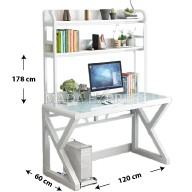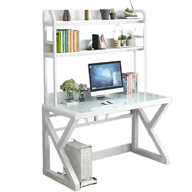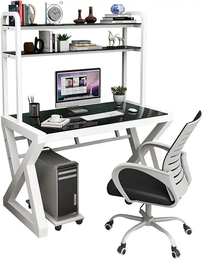 A practical desk with a sturdy metal design, equipped with two shelves for additional storage space. Ideal fo.
