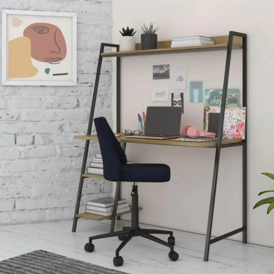 A modern study desk that combines practical design with high-quality materials. It's ideal for organizing your study space.
