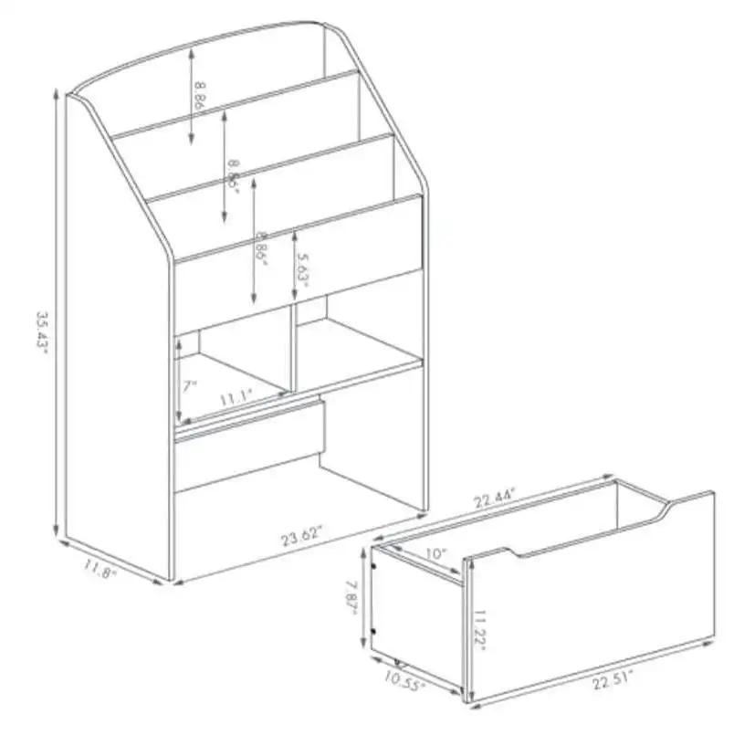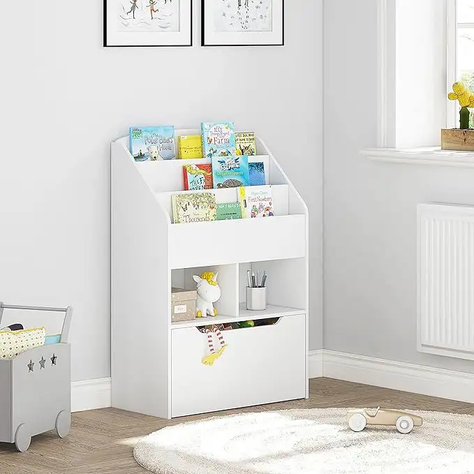 تتميز خزانة كتب الأطفال هذه بثلاثة رفوف للكتب لعرض الكثير من الكتب، كما أن المكعبين السفليين مثاليان لتخزين الألعاب والكتب. صندوق الألعاب المتدحرج ذو العجلات في الأسفل مناسب لتخزين المزيد من الألعاب والأشياء الثقيلة