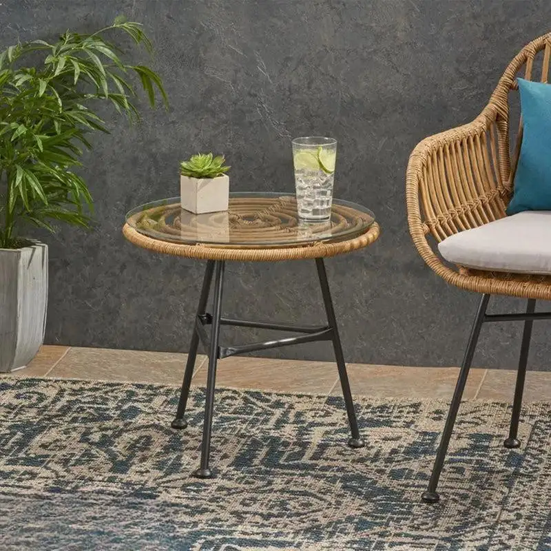 This table is specially designed for outdoor use. It is made of high-quality rattan, which is durable and weather-resistant.