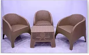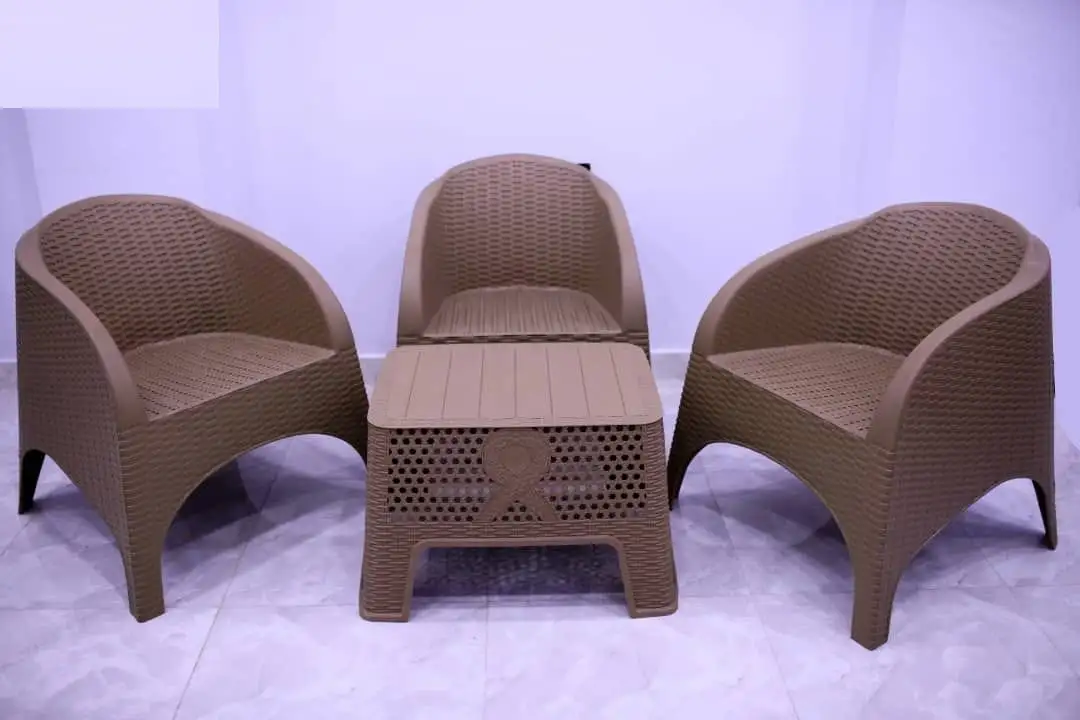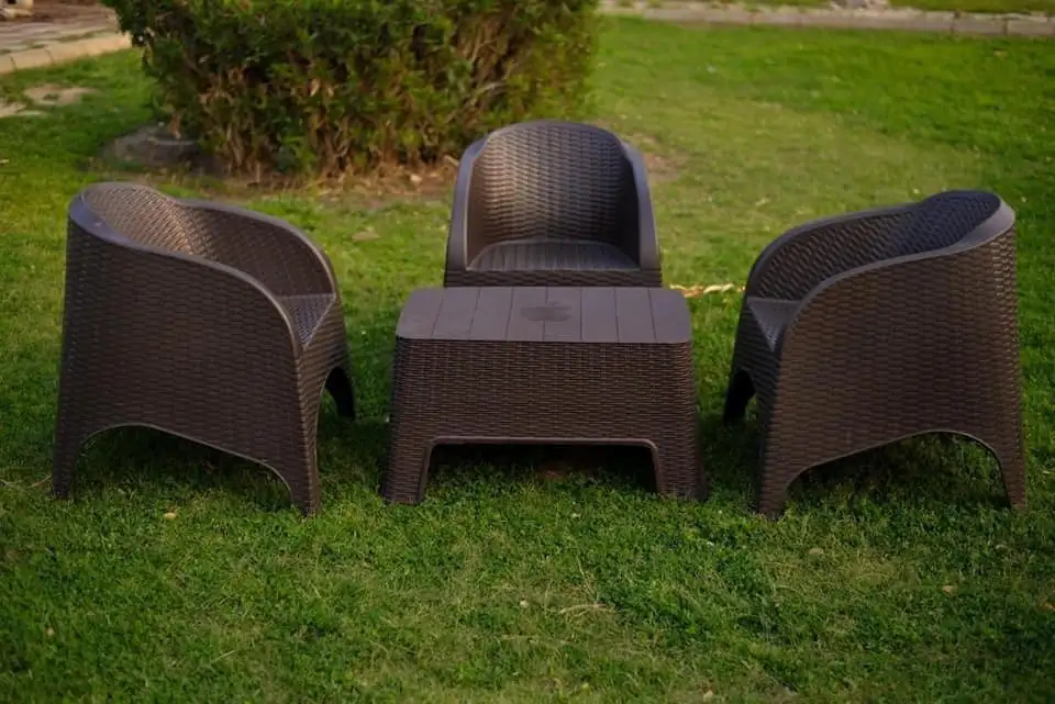 Outdoor plastic set with 3 chairs and 1 table. Lightweight, durable, and weather-resistant. Perfect for gardens, balconies, and terraces.