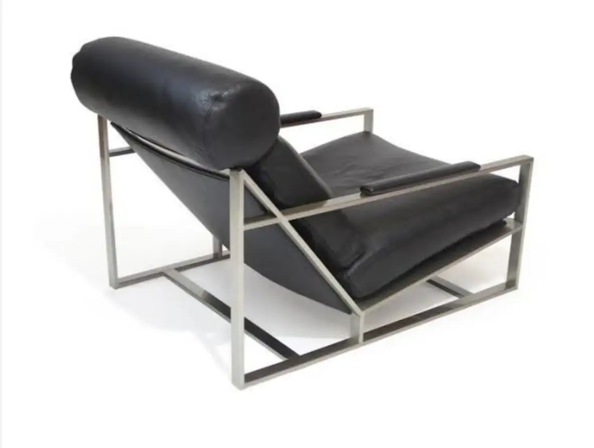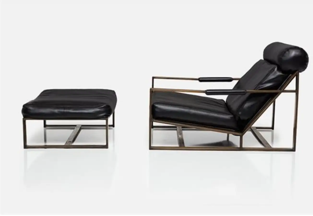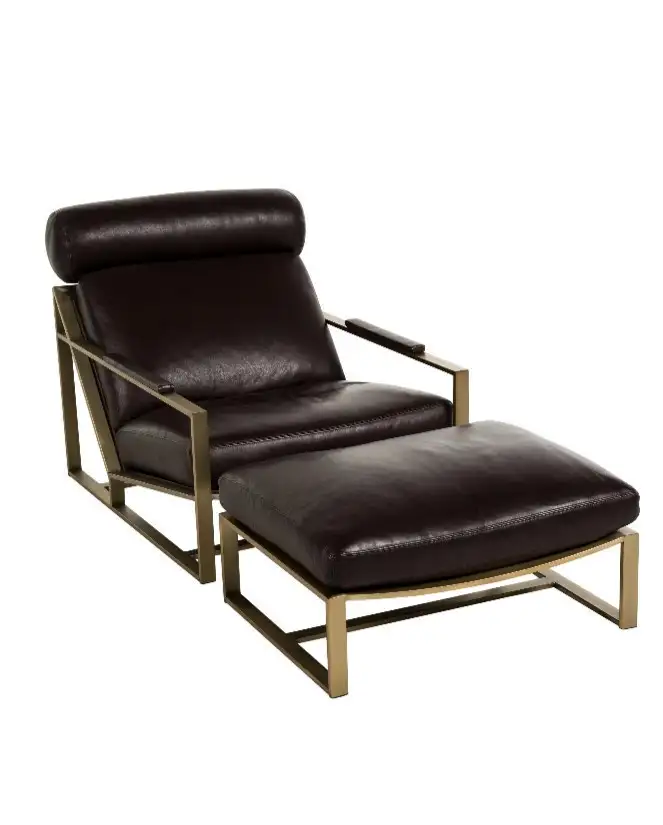 كرسي فوتيه + بوف مودرن مصنوع من معدن و قماش جلد عالي الجودة