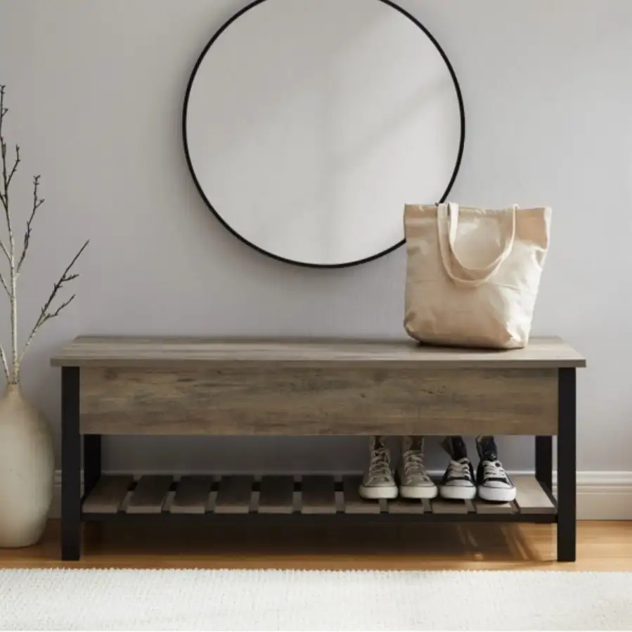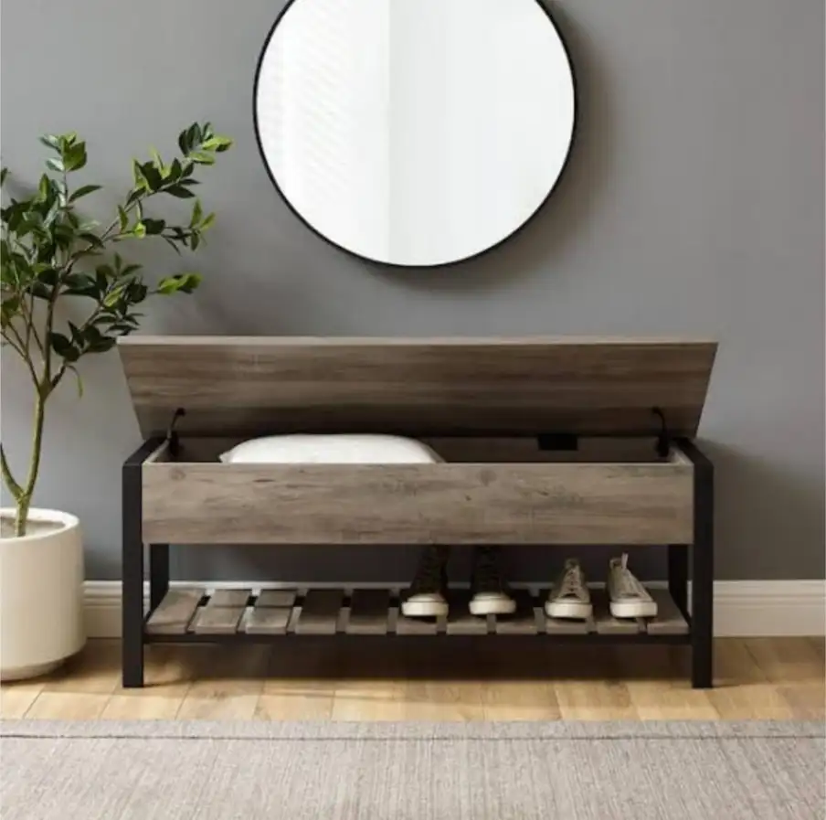 • بانكيت مودرن مصنوع من حديد مطلي الكتروستاتيك و خشب زان أحمر عالي الجودة