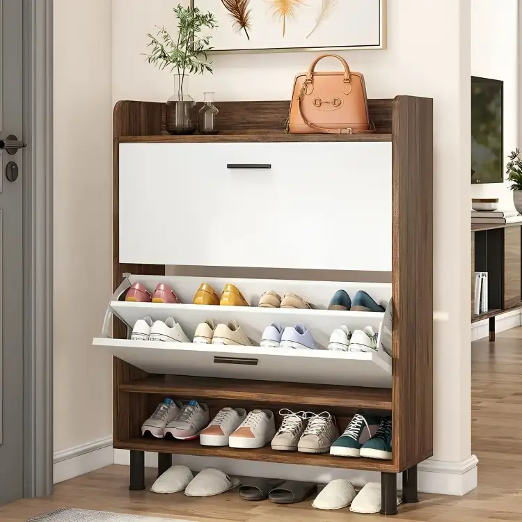 • التخزين والراحة، ما الذي يمكنك أن تطلبه أكثر من ذلك؟ تحتوي بعض وحدات تخزين الأحذية الخشبية لدينا على مقعد تخزين ثلاثي المكعبات وهو طريقة رائعة لحفظ العناصر الزخرفية والهوايات والأحذية والألعاب. كما أنه مثالي لوضع العناصر التي تحتاجها أثناء التنقل أو كمكان يمكنك الجلوس فيه وارتداء حذائك بسرعة. اختر من بين أربع لمسات نهائية جميلة. يمكن أن تتناسب أحجام تخزين الأحذية الخشبية لدينا بشكل مثالي مع المدخل، أو غرفة النوم، أو غرفة اللعب
