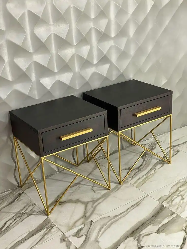 Modern nightstand with drawer made of natural plywood and electrostatic painted metal of high quality MS-13113