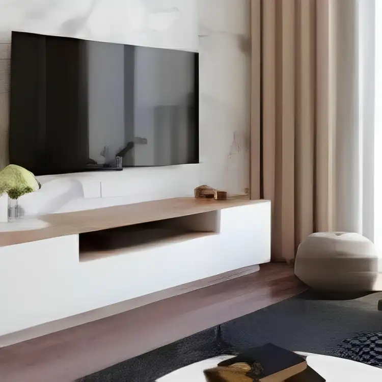 • من السهل إبقاء أسلاك التلفزيون والأجهزة الأخرى بعيدًا عن الأنظار ولكن في متناول اليد، حيث توجد عدة منافذ للأسلاك في الجزء الخلفي من طاولة التلفزيون.