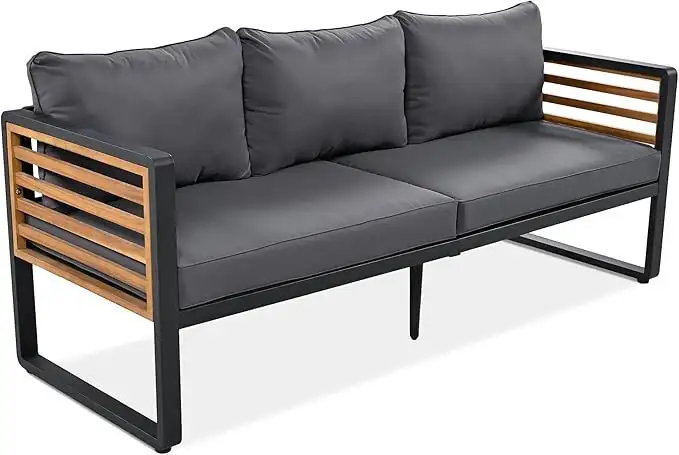 Weather-resistant outdoor lounge set with electrostatic-coated metal frame, including a 3-seater sofa and 2 chairs—perfect for gardens and terraces.